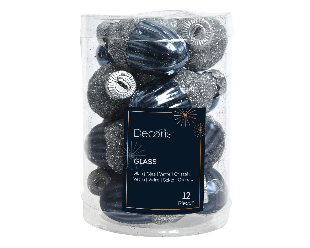 Set of 12 Night Blue Glass Acorn Christmas Decorations – 3x4 cm