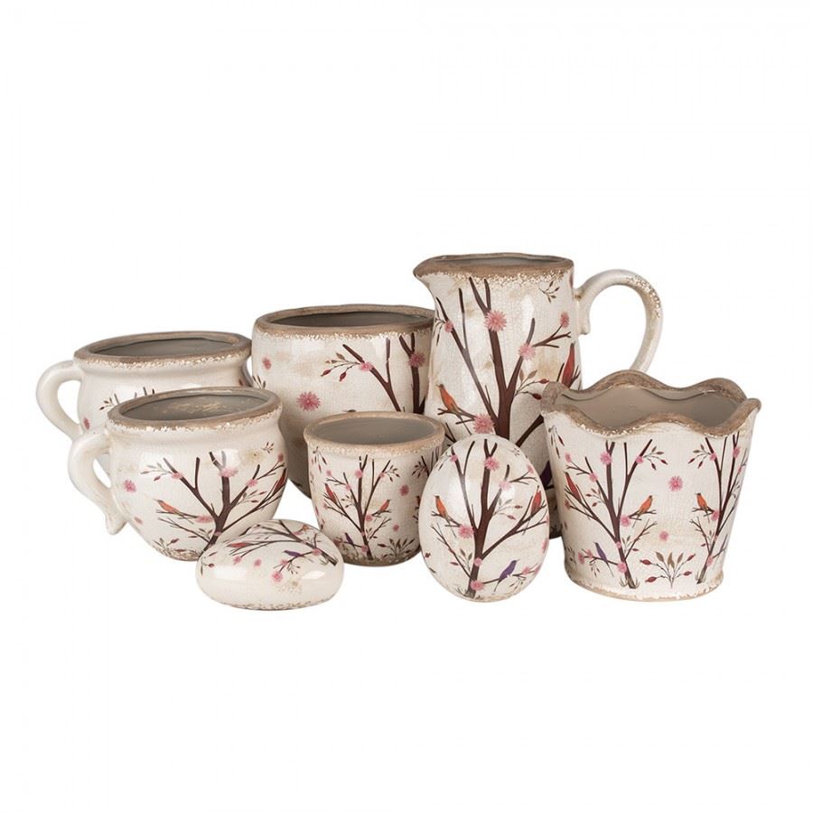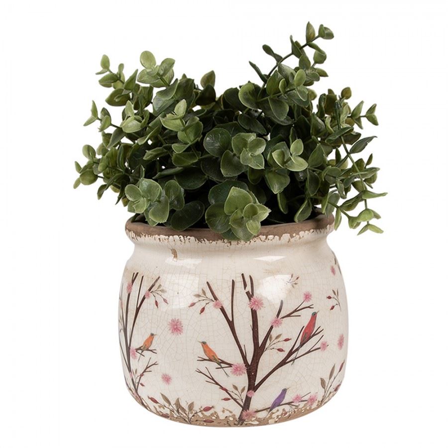 Ceramic Flower Pot in Vintage Style Birds, 16*13 cm, 6CE1642M