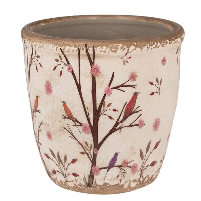 Ceramic Flower Pot in Vintage Style Birds, 16*16 cm, 6CE1641L
