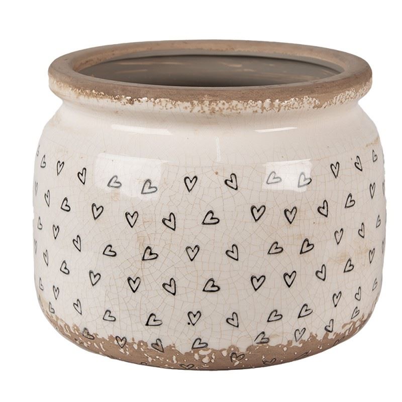 Ceramic Flower Pot in Vintage Style Black Hearts, 20*15 cm, 6CE1653L