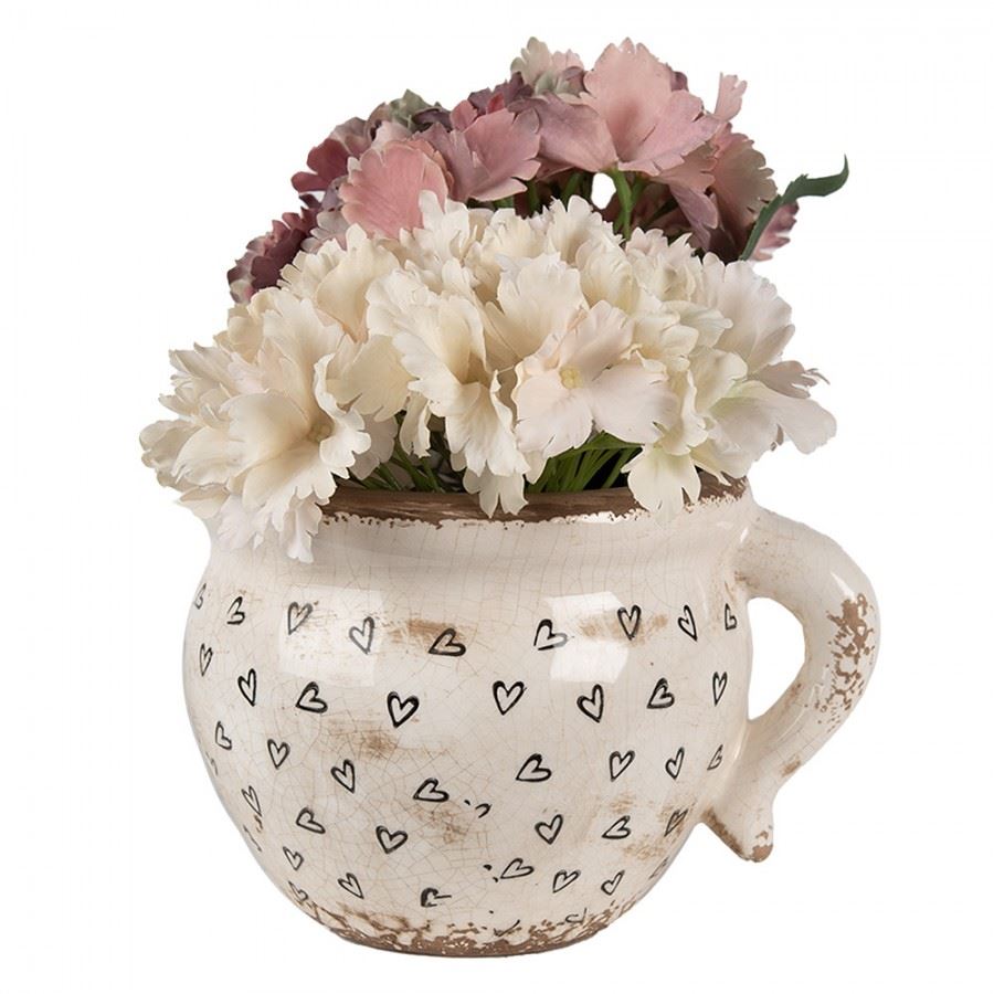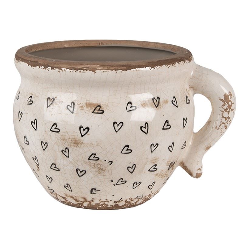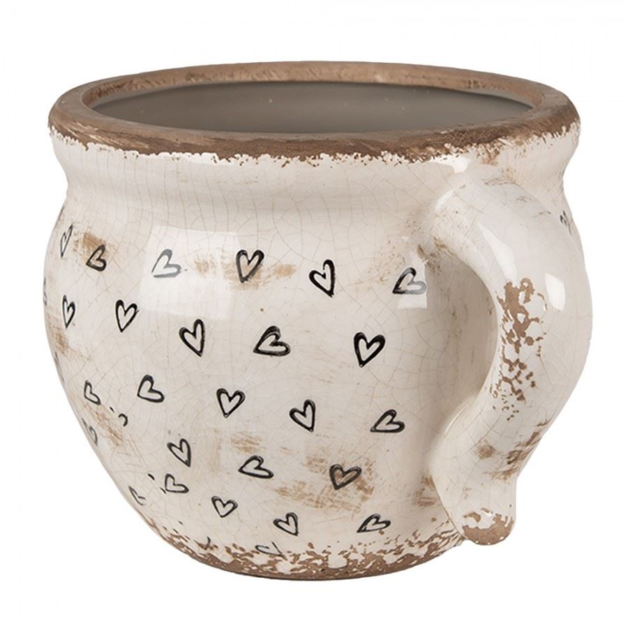 Ceramic Flower Pot in Vintage Style Black Hearts, 20*17*15 cm, 6CE1655L