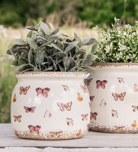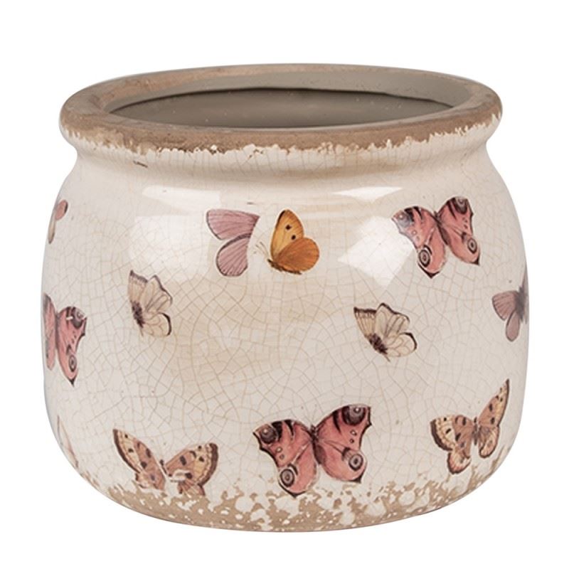 Ceramic Flower Pot in Vintage Style Butterflies, 12*10 cm, 6CE1662S