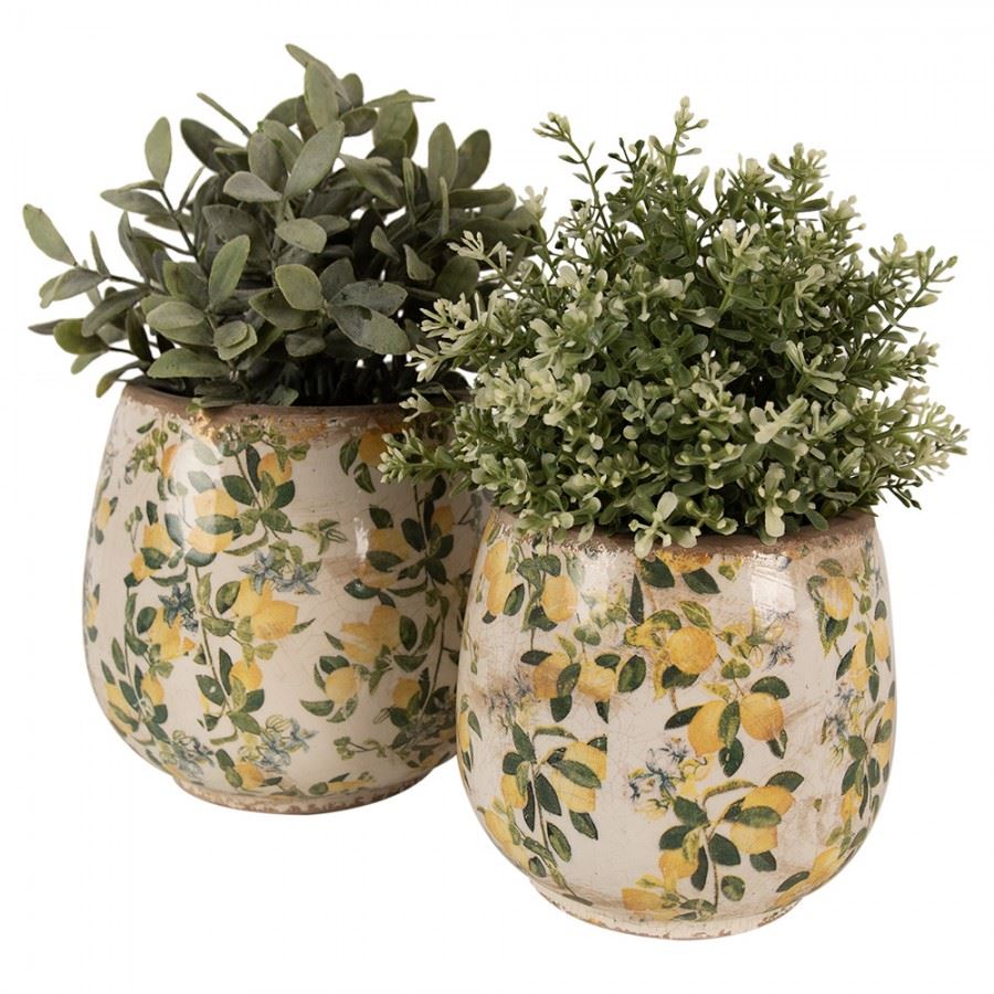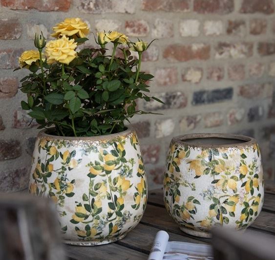 Ceramic Flower Pot in Vintage Style Yellow Lemons, 18*17 cm, 6CE1608L