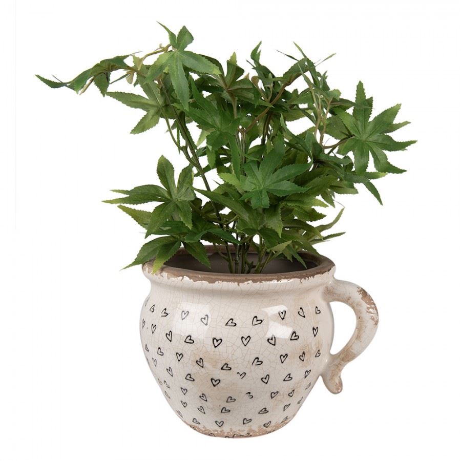 Ceramic Vintage-Style Flower Pot Black Hearts, 17*14*12 cm, 6CE1655M