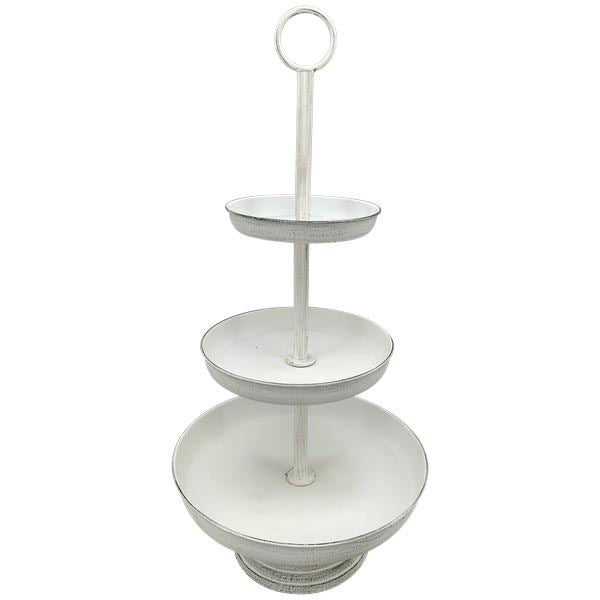 Three-Tier White Metal Serving Stand 12x12x25 in