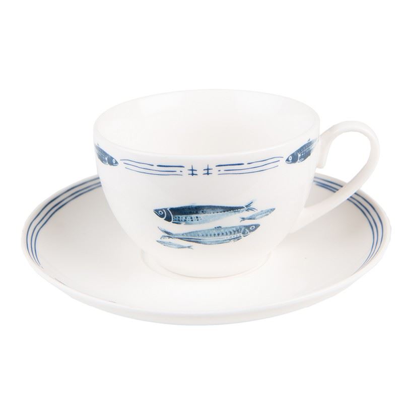 Cup and saucer Blue White Fishes, 250 ml, FIBKS