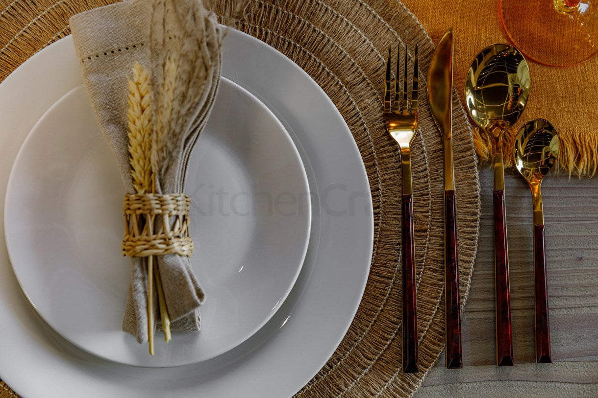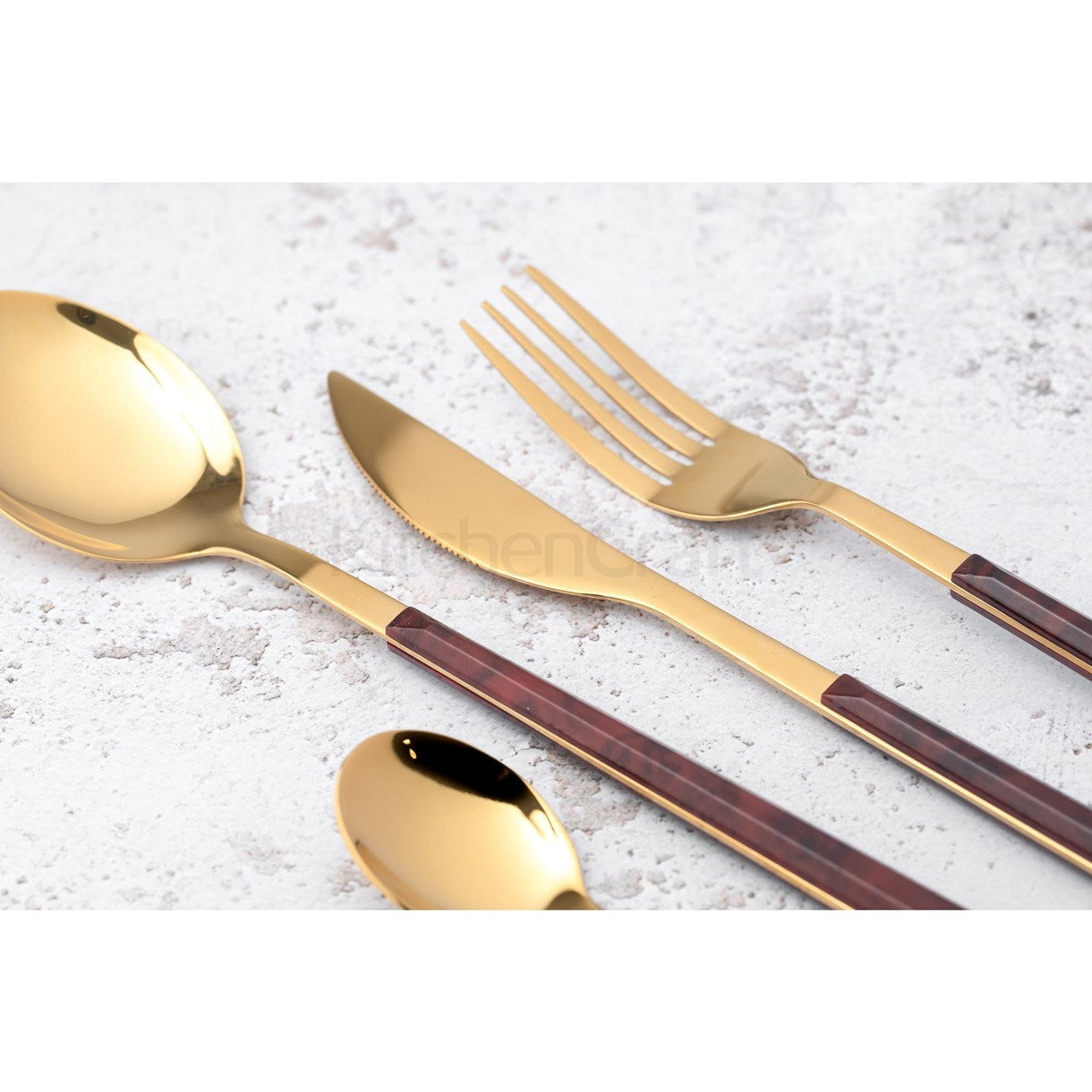 The set of cutlery is designed for 4 people, made of high-quality stainless steel with a luxurious golden coating, will be a great addition to the festive table setting
