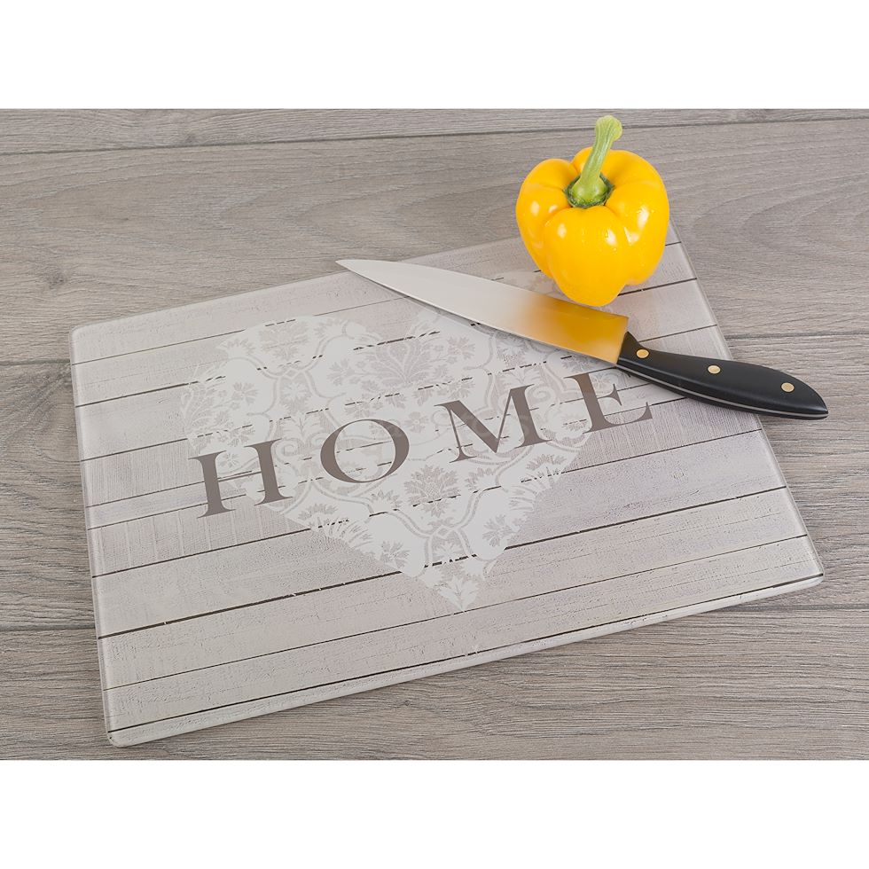 Creative Tops glass cutting boards are designed to make your kitchen modern and safe. The tempered float glass, specially made for food use, can withstand temperatures up to 150 ° C, while the plastic feet on the back prevent the board from slipping during use.