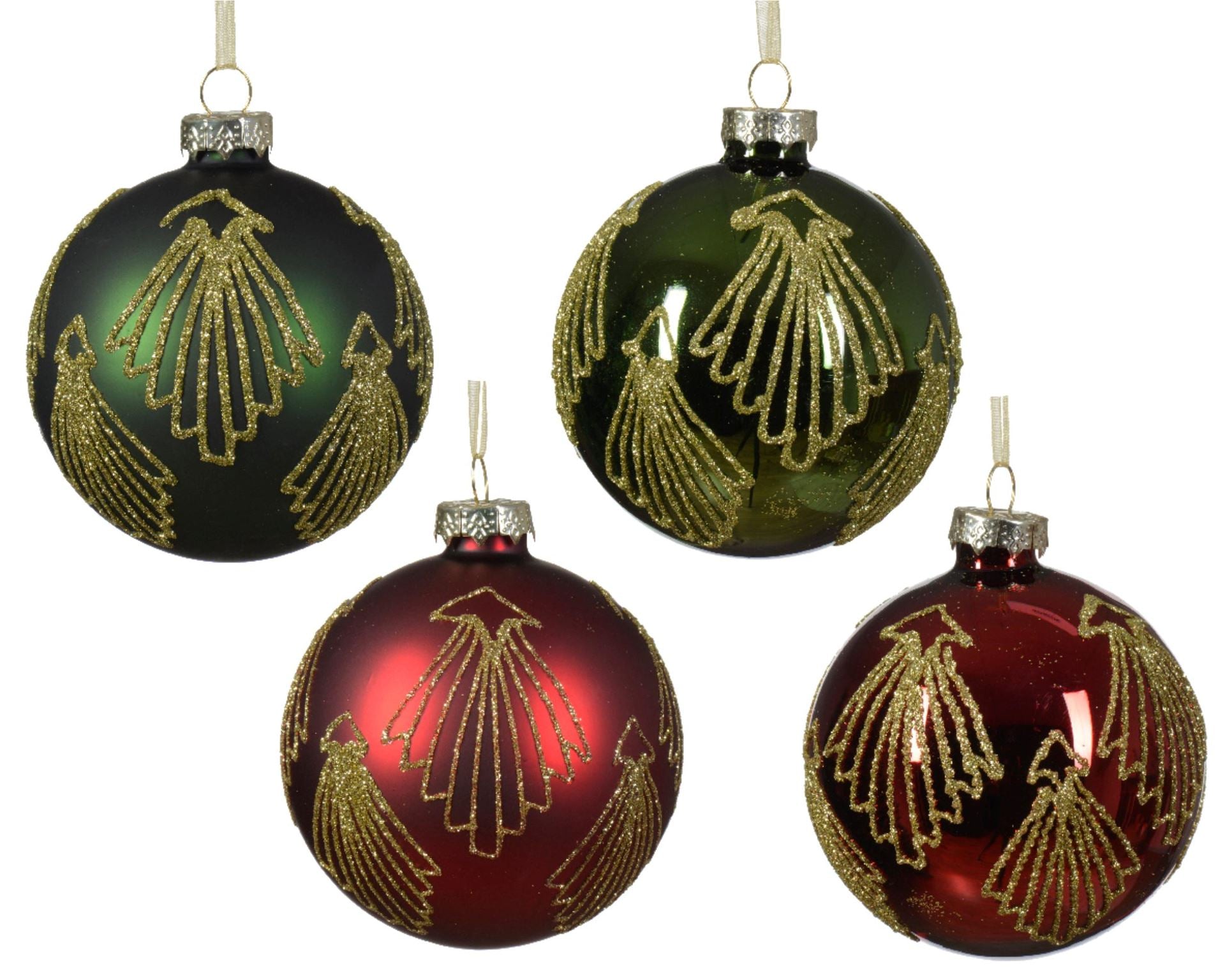Red & Green Glass Christmas Tree Ball – 8 cm Holiday Ornament