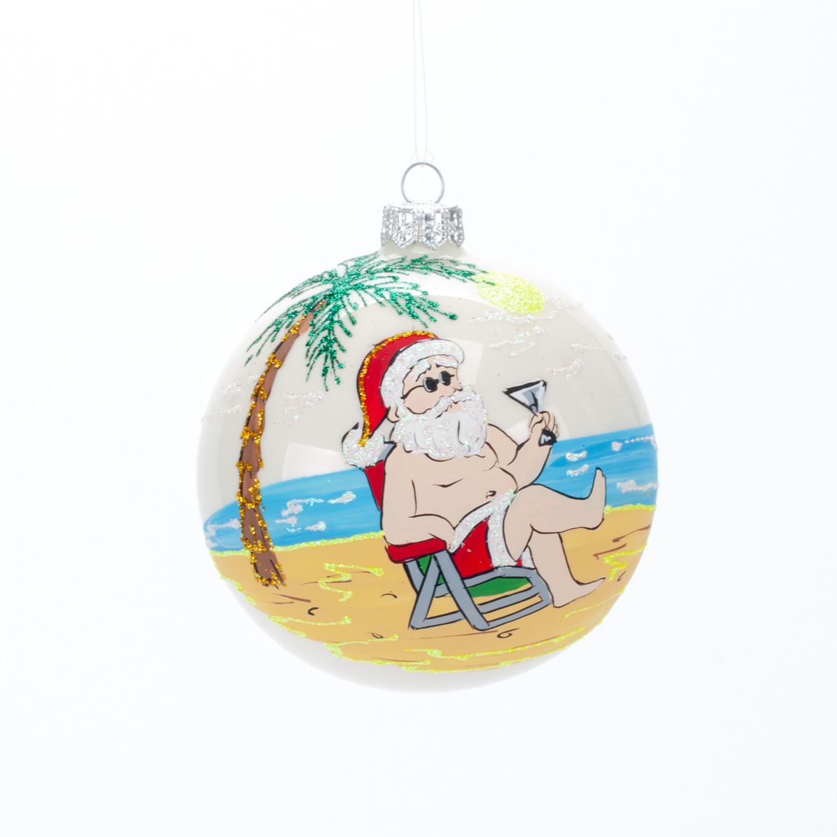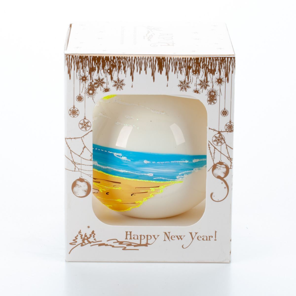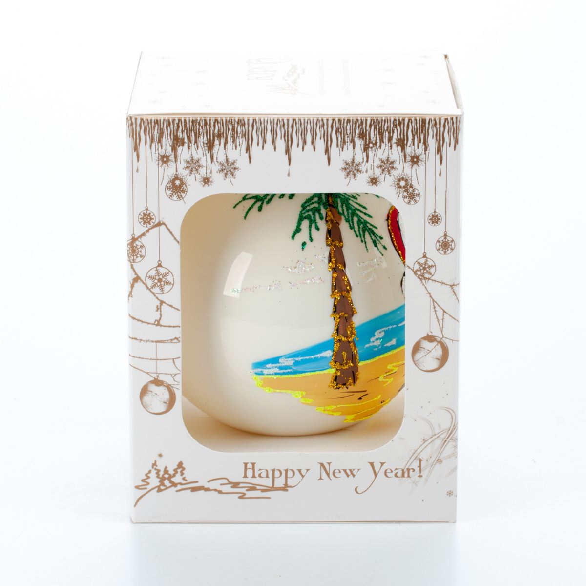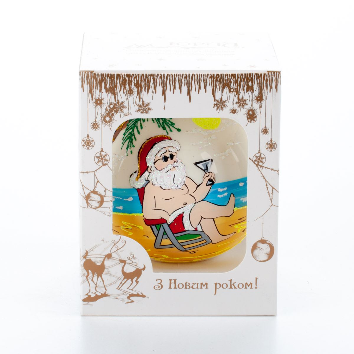Glass ball for the Christmas tree in Santa gift packaging, 9 cm, 100547M New Year's decoration Ball, 9 cm, 100547M
