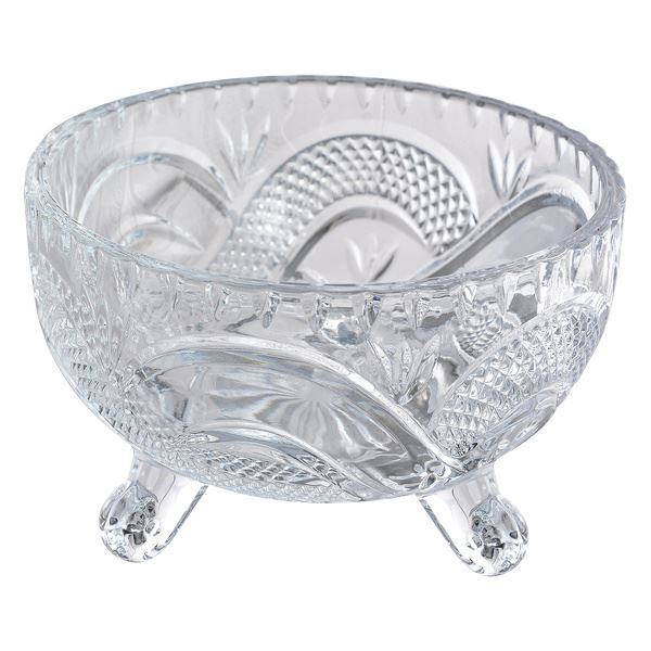 The bowl's design recreates the aesthetic of past eras, making it a true gem for lovers of antique and classic decor elements. The graceful lines, textured glass, and elegant feet create a distinctive look. Perfect for serving a variety of dishes: from fresh fruits, berries, and light desserts to appetizers, salads, or even small portions of sauces. The pedestal adds a sense of festivity and makes it convenient to place on the table.