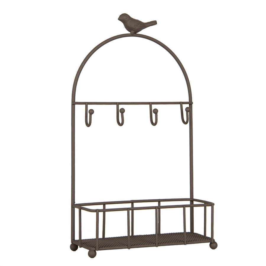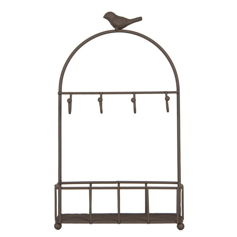 Keep your keys organized in style with this charming vintage-inspired wall key holder. Crafted from sturdy metal in a rustic finish, it features an elegant arched frame topped with a decorative bird and five practical hooks for keys or small accessories. The lower shelf provides extra space for mail, sunglasses, or decorative accents, making it both functional and beautiful. Perfect for entryways, hallways, or kitchens, this key holder adds a touch of country charm and whimsical elegance to any home.