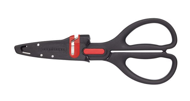 Sharp multifunctional scissors are essential in the kitchen. These innovative MasterClass scissors feature robust stainless steel blades and come with a protective cover with patented Edgekeeper technology. The built-in sharpener on the side of the sheath makes blade maintenance easy. The sheath also ensures safe storage. You can easily run the scissors through the sharpener, keeping both blades sharpened to the perfect cutting edge, so they are always ready to use. Ideal for easy cutting of tough stems, herbs, and meat. Ergonomic handles provide maximum comfort during sharpening and cutting. Built-in sharpener Safety cover Dishwasher safe 5-year warranty