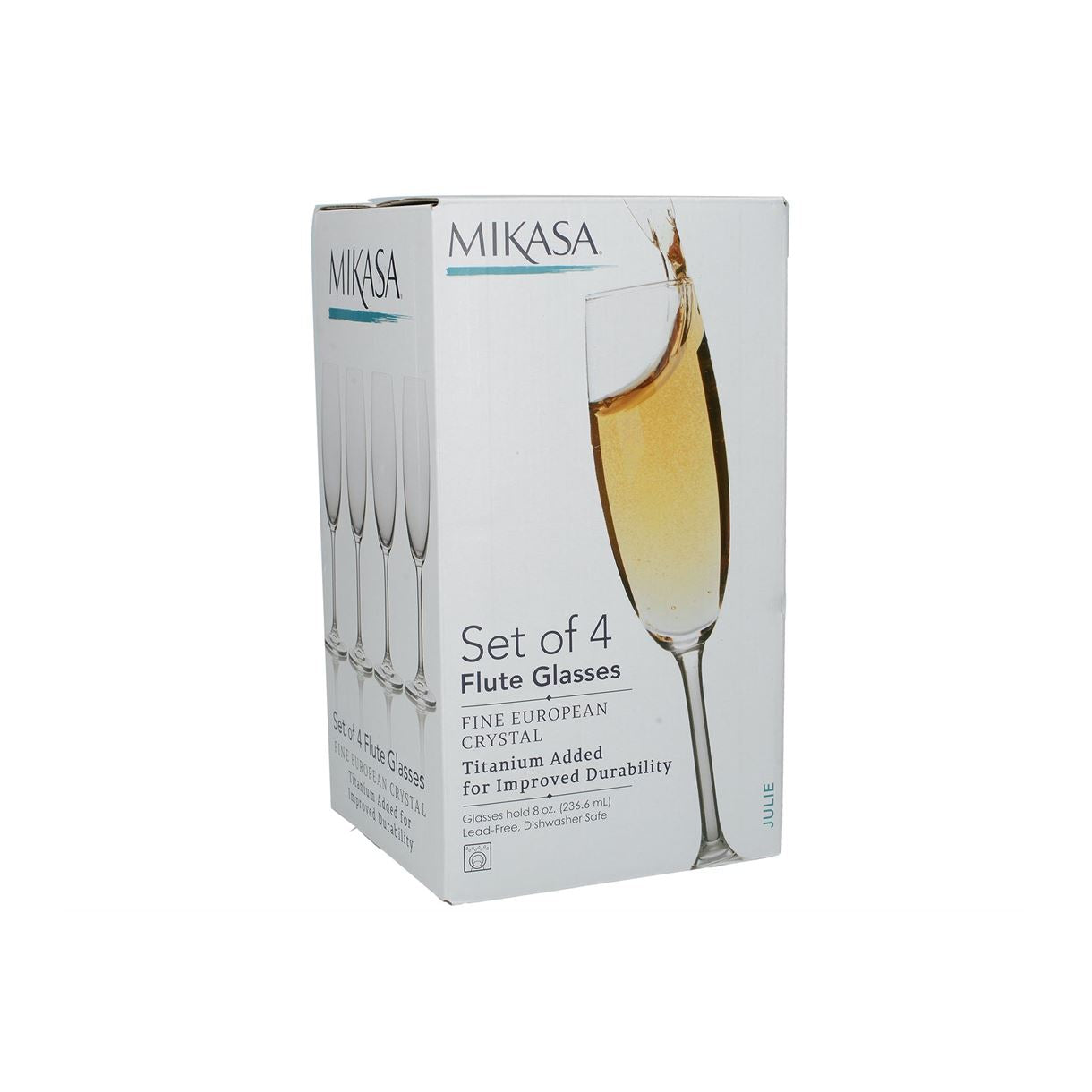 Mikasa Julie Champagne Flute Set – 4-Piece Lead-Free Crystal Glasses