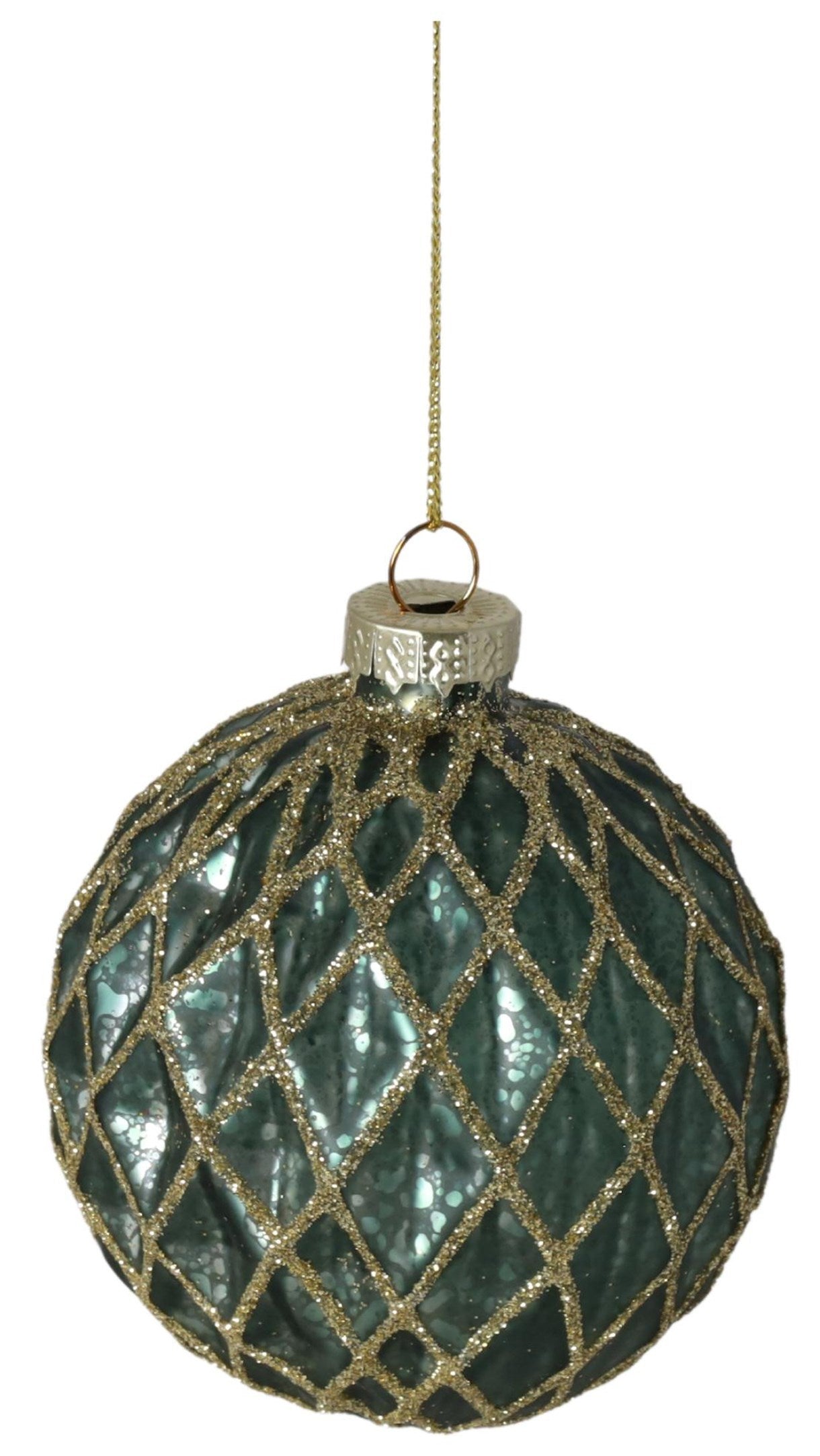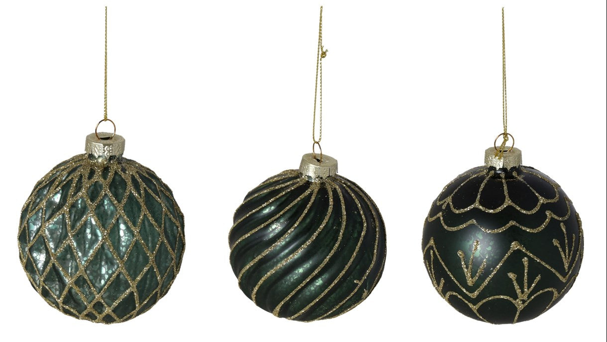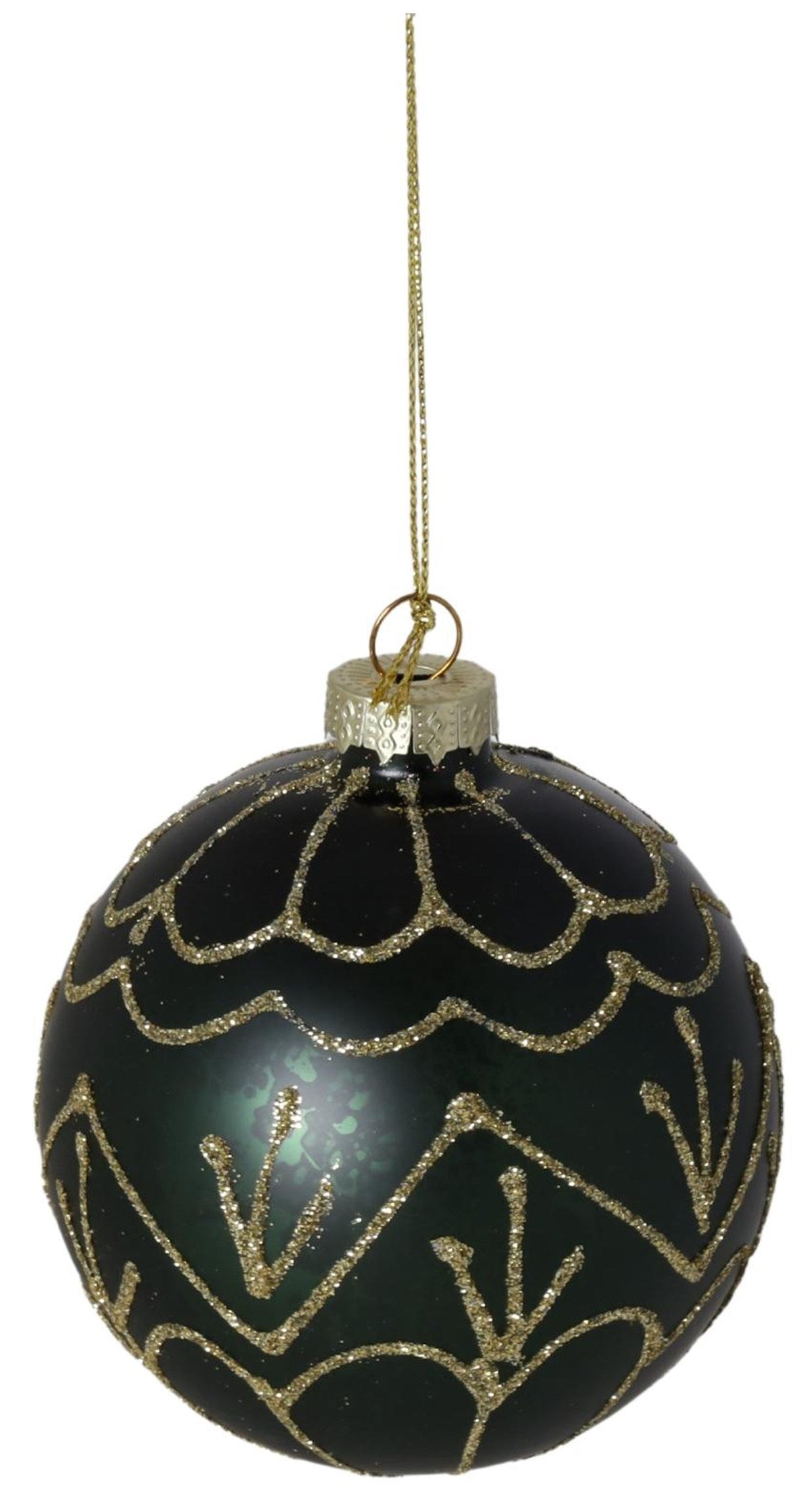 New Year decoration Ball, dark green with gold, glass, 8 cm, 13967 New Year decoration, 8 cm, 13967