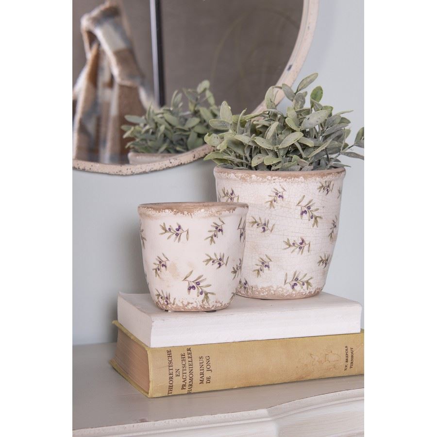 Olives vintage style ceramic flower planter 5.6x5 in (14*13 cm)