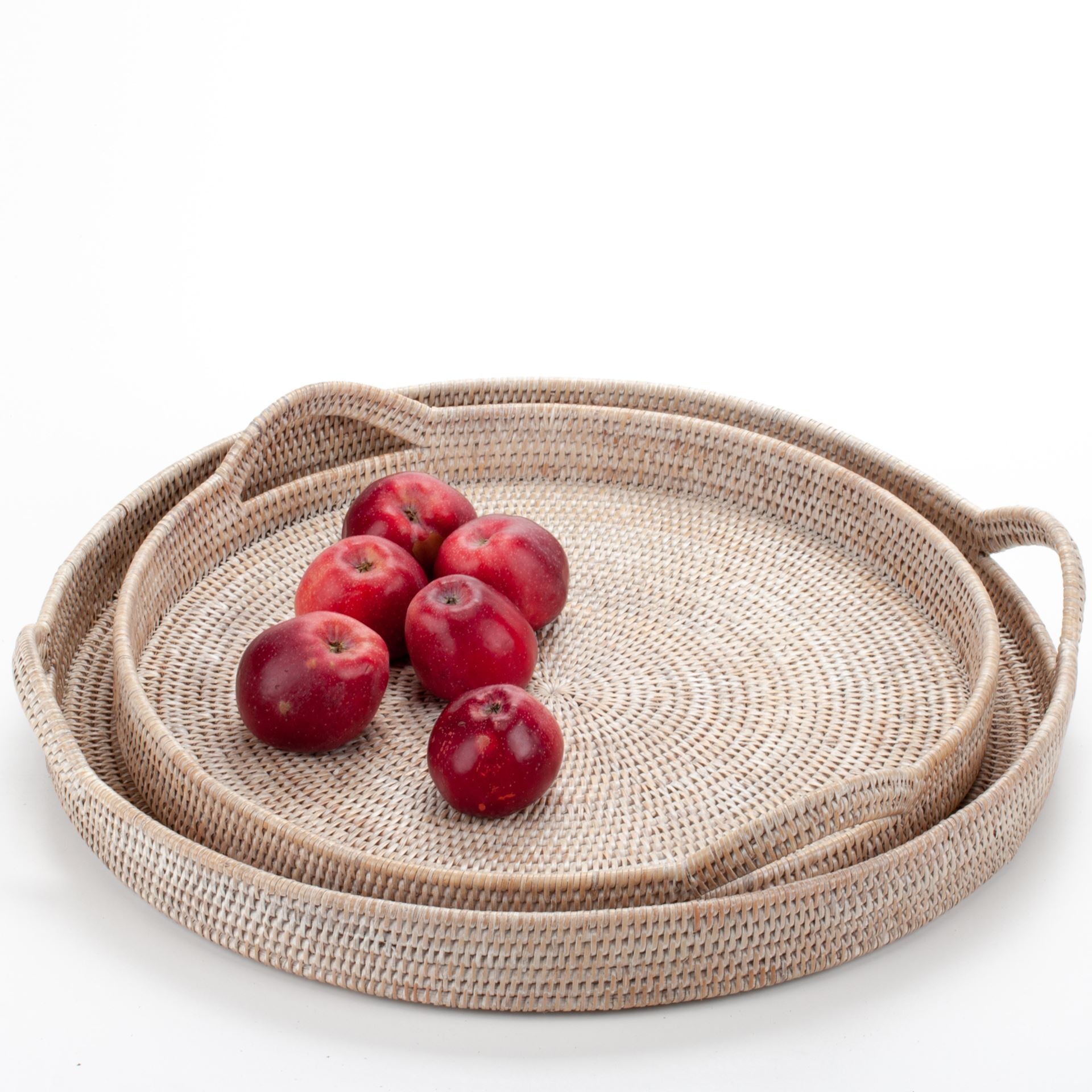 Round Tray with Handles Woven from Rattan, 48*6/10 cm, 71014-white