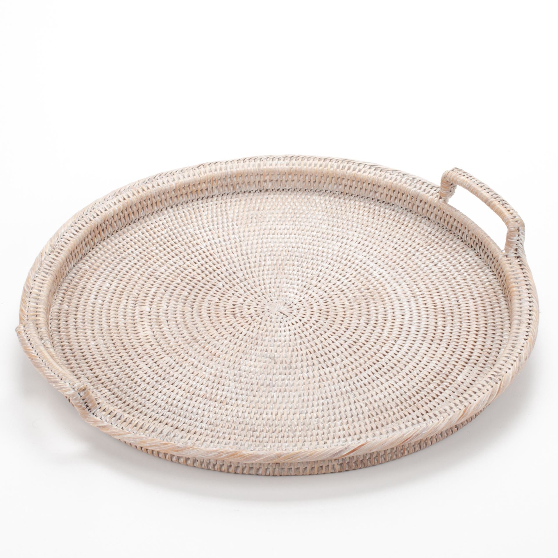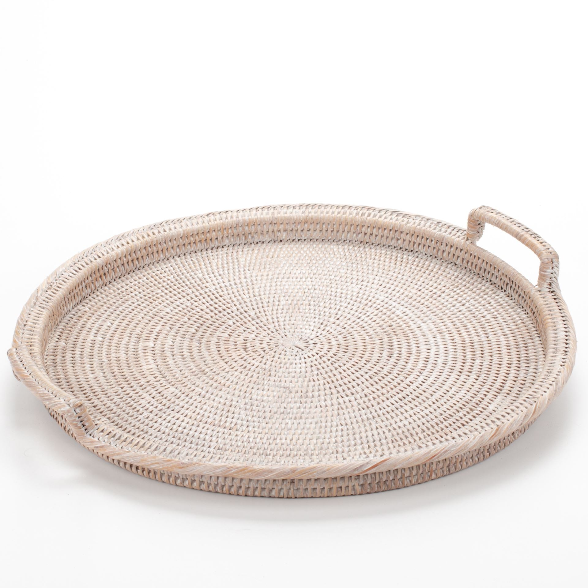 Round Tray with Handles Woven from Rattan, 48*6 cm, 71026-white