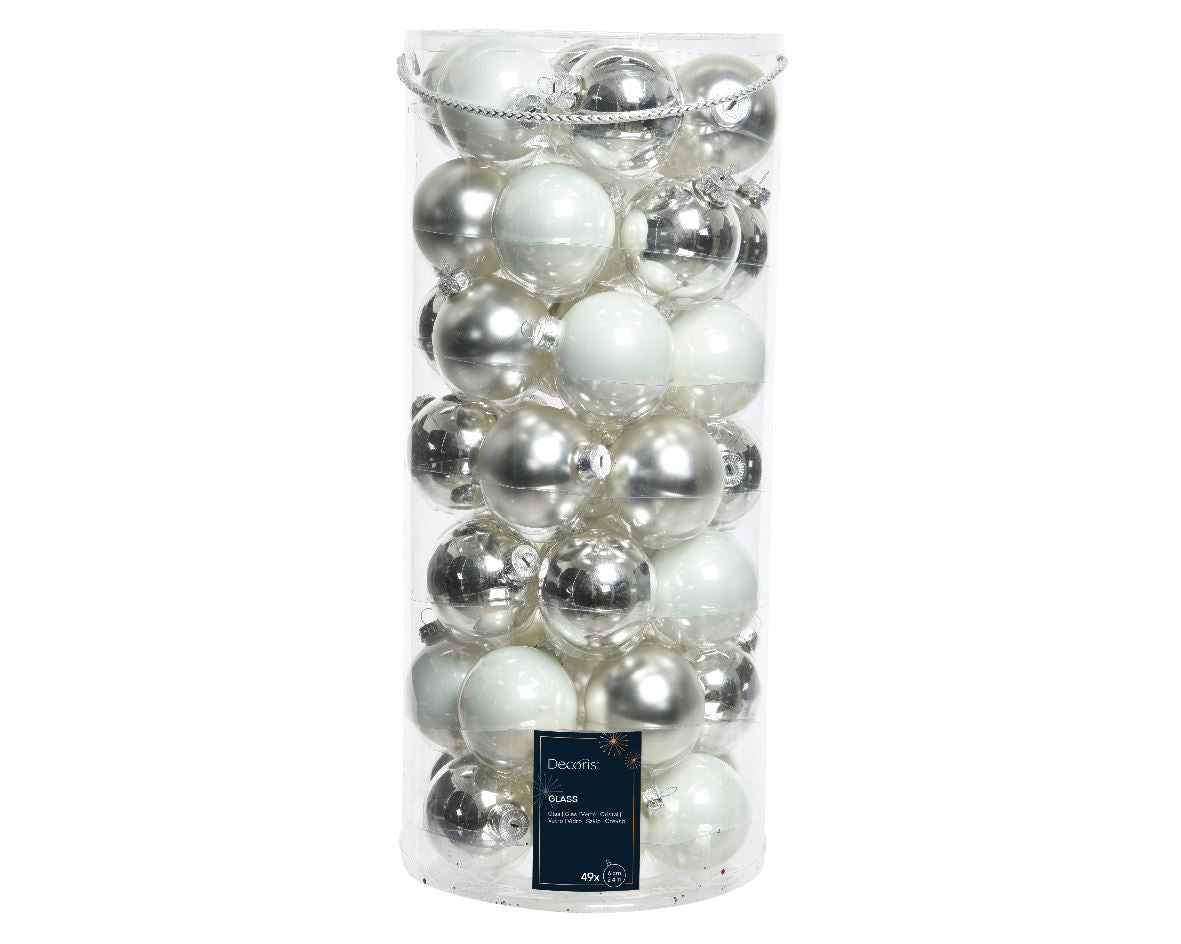 Set of glass balls for a Christmas tree White/Silver, 49 pcs, 6 cm, 14.3166 Set of Christmas balls White/Silver, 49 pcs, 6 cm, 14.3166