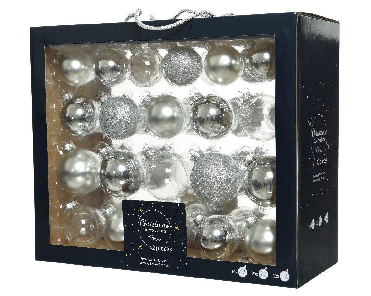 Set of glass balls for Christmas tree Silver, 42 pcs., 7/6/5 cm, 14.9251 Set of glass balls for Christmas tree Silver, 42 pcs., 7 cm, 14.9251