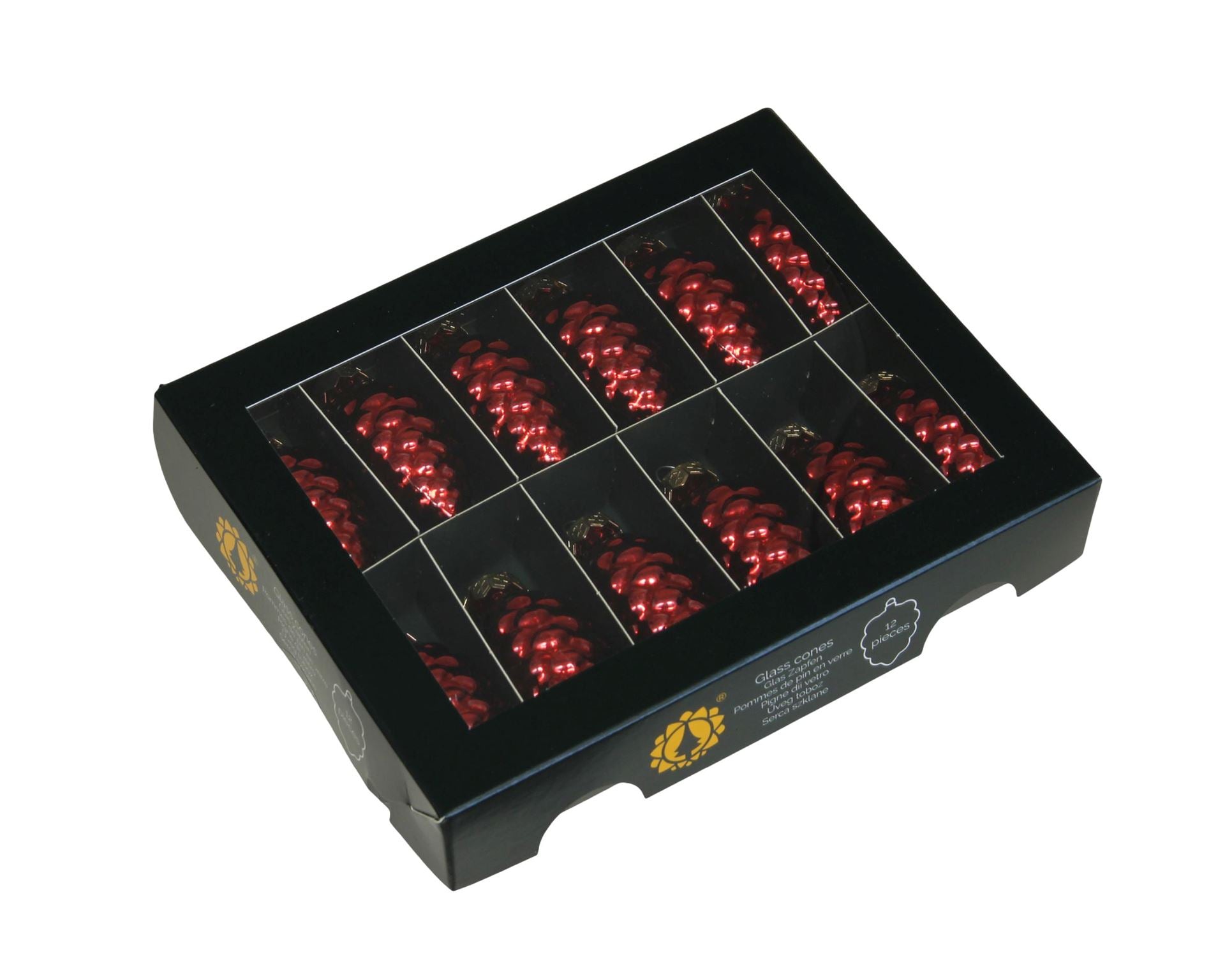 Set of Glass Christmas Tree Decorations – Cone Dark Red, 12 pcs