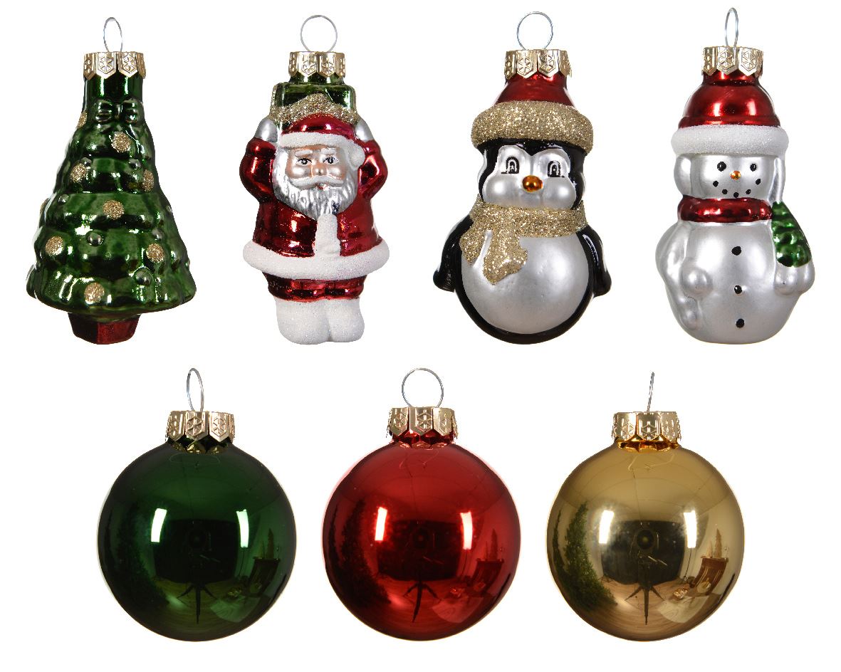 Set of glass figurines for a Christmas tree MIX, 5 pcs., 4.5*7 cm, 12.9592 Set of Christmas tree figurines MIX, 7 pcs., 4.5*7 cm, 12.9592