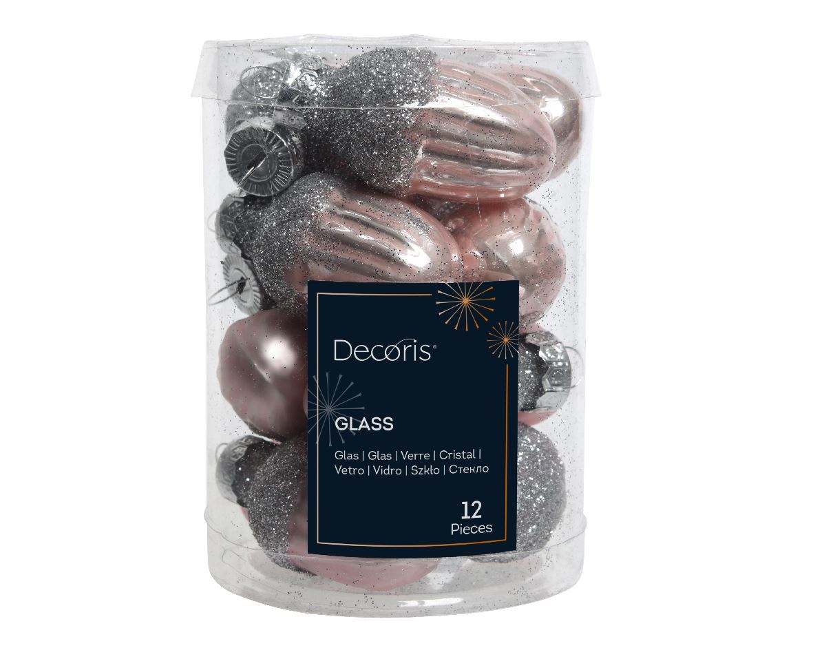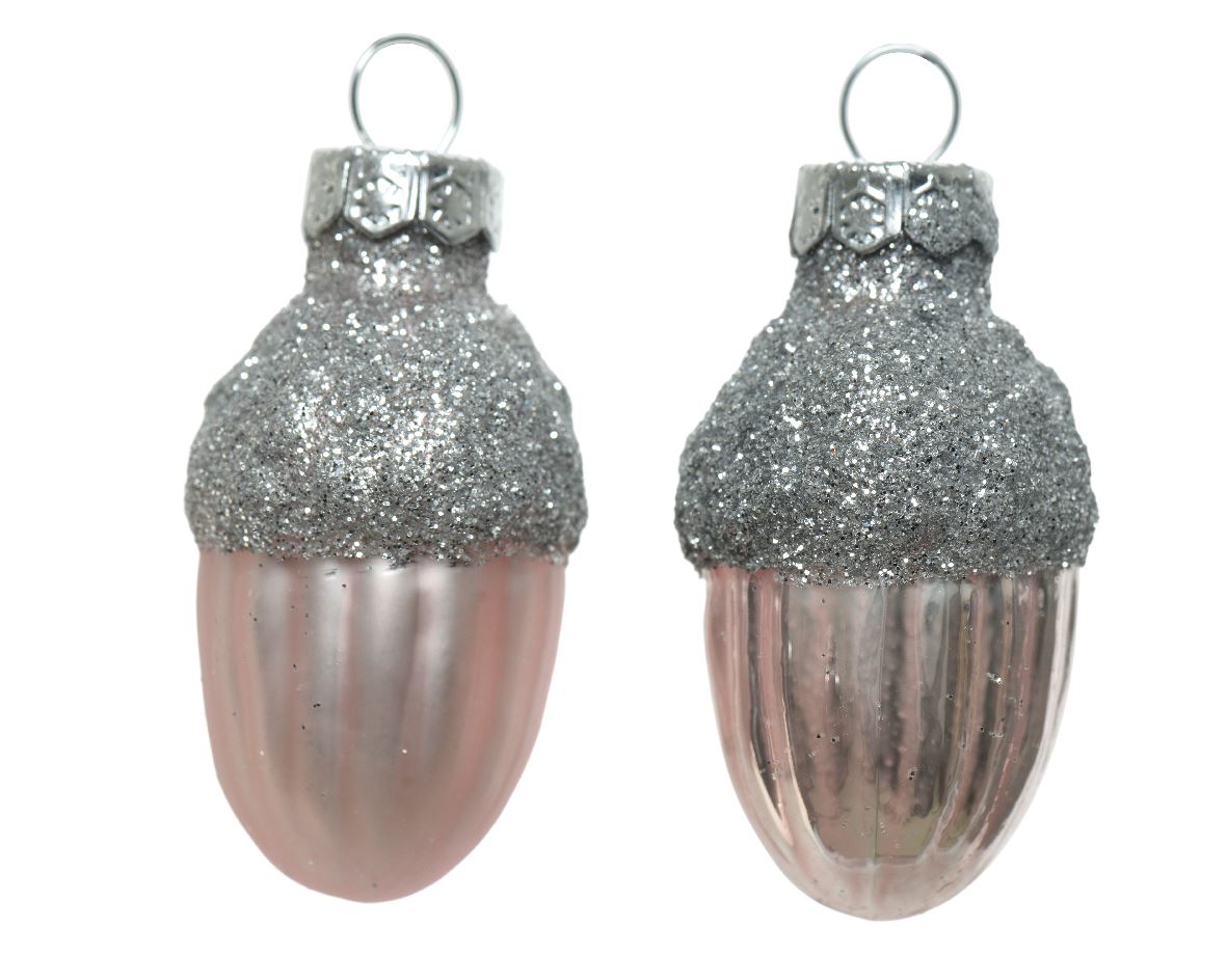 Set of glass ornaments for Christmas tree Acorn Blush Pink, 12