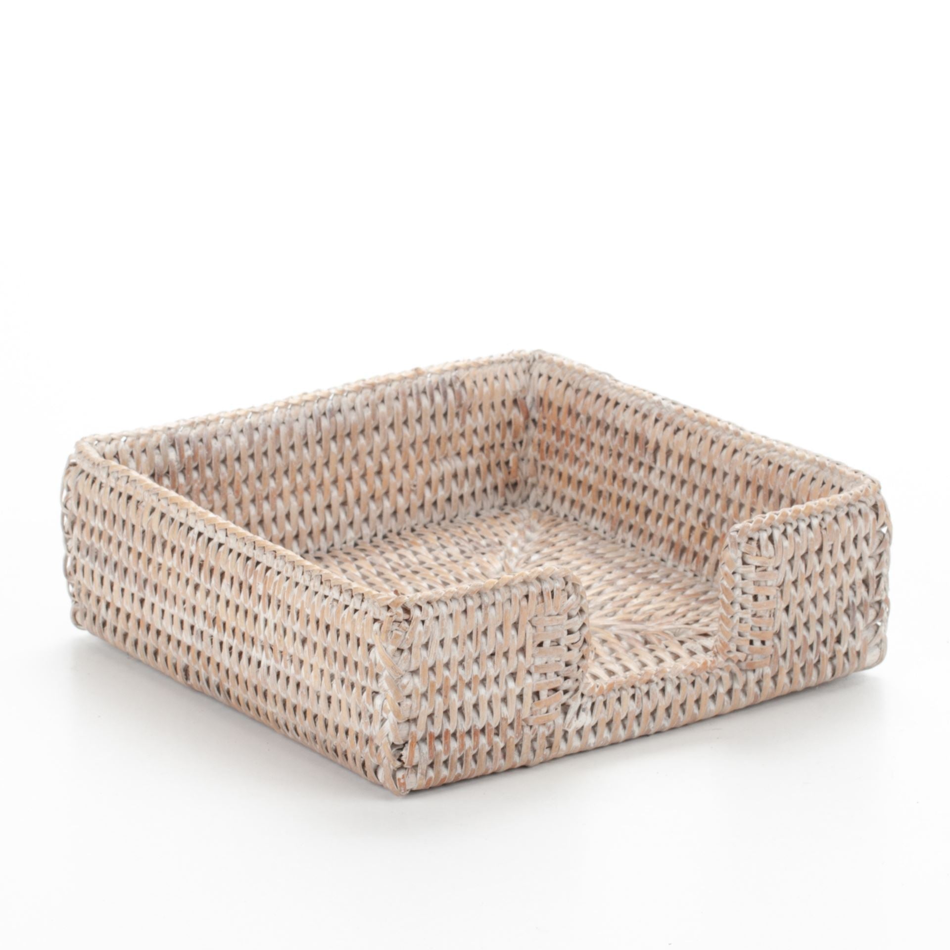 Handwoven Rattan Napkin Holder – Boho Table Decor, Natural Wicker Square Basket for Kitchen or Dining Table, Eco-Friendly Farmhouse Style