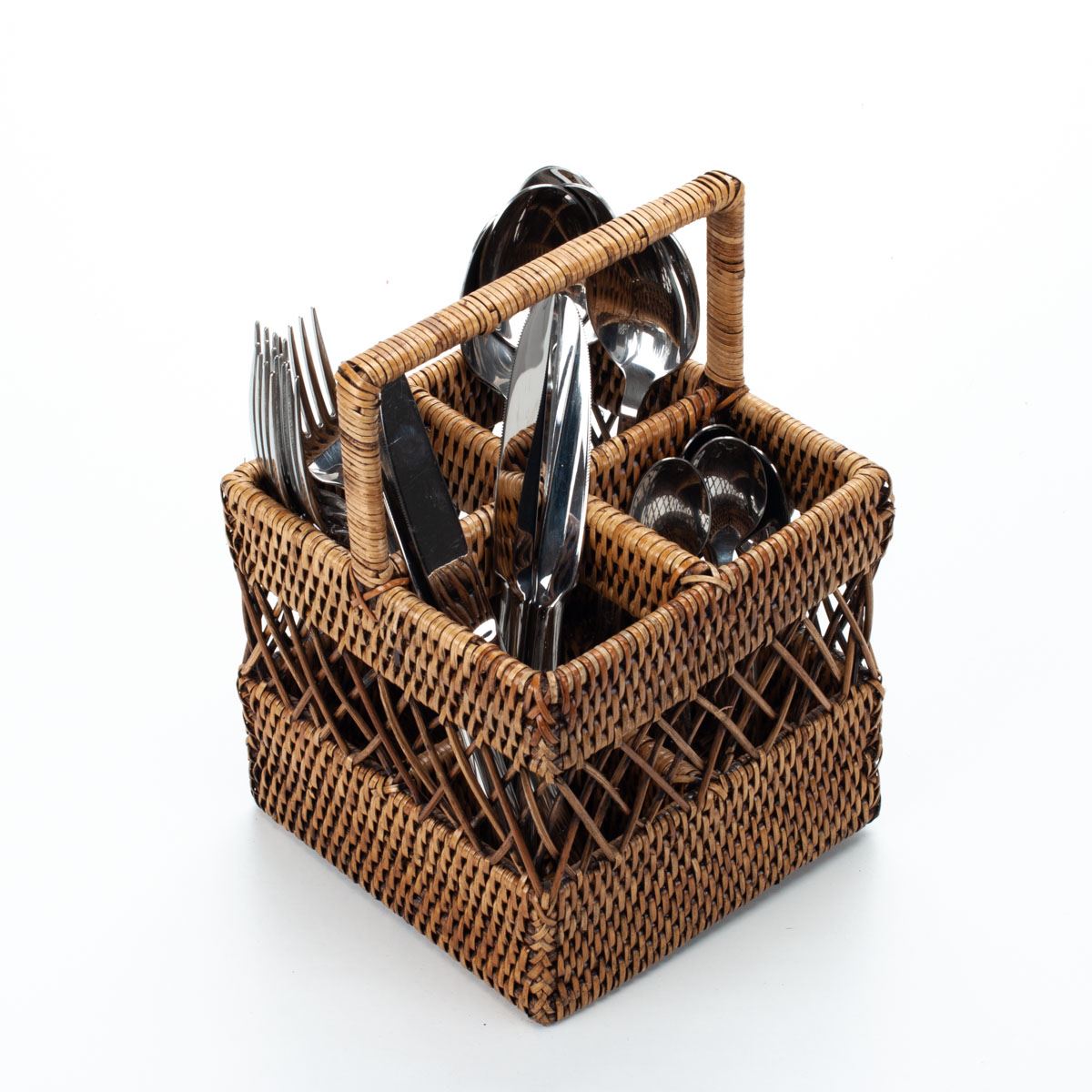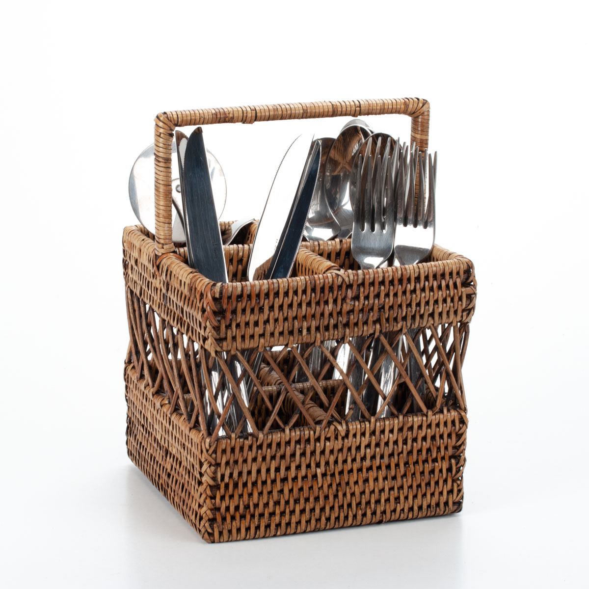 The rattan stand is sold without cutlery.